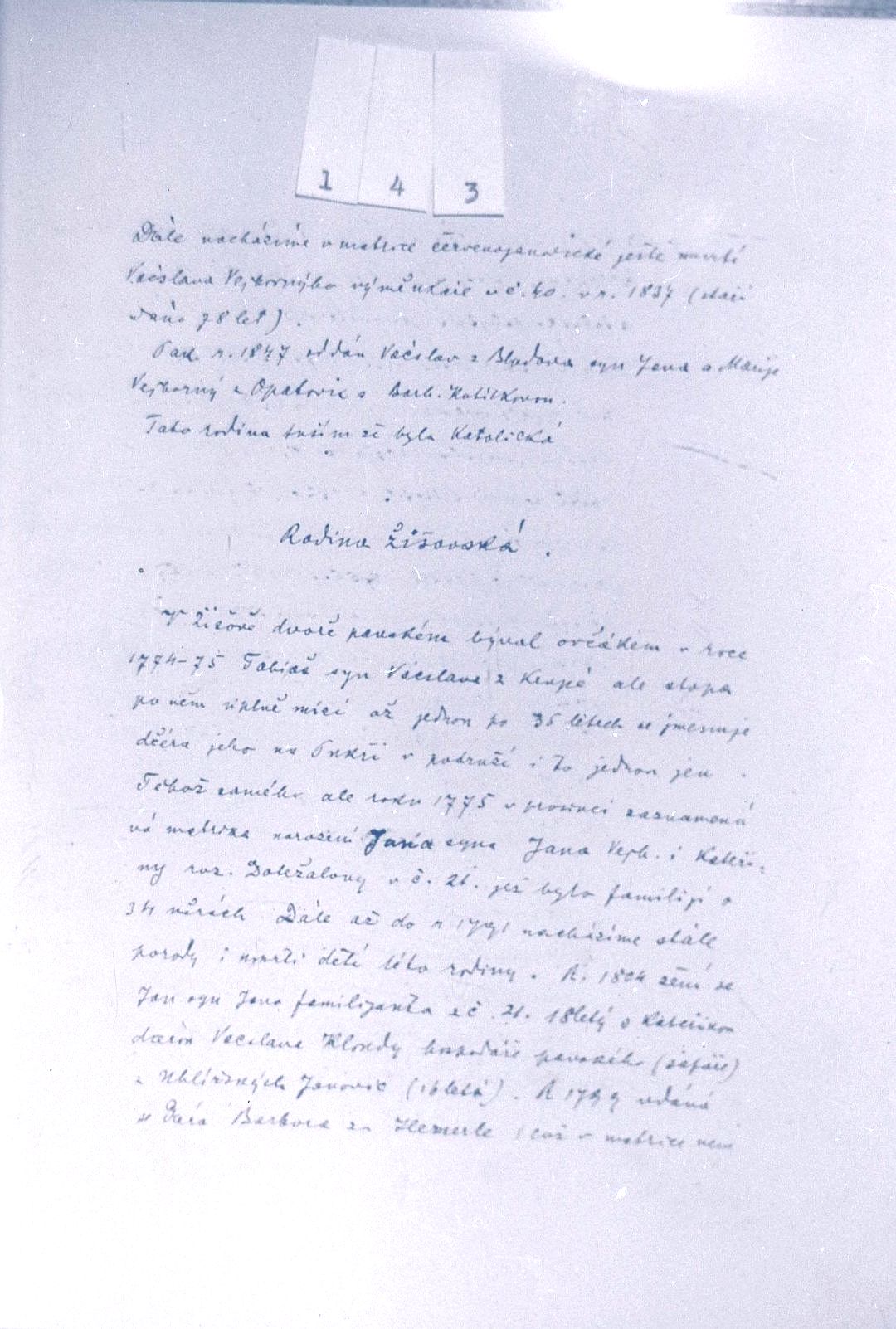 Linie ZISOVSKA, udaje z matriky uhlirsko janovicke [143, 144]