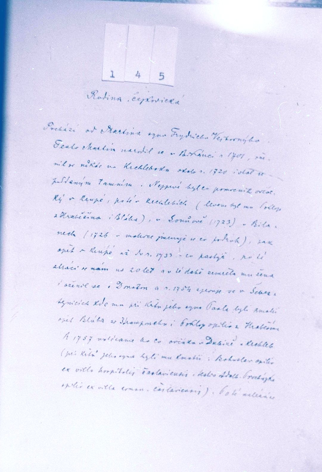 Linie CEJKOVICKA (od Martina *1701, syna (11)Frydricha) [145, 146, 147]